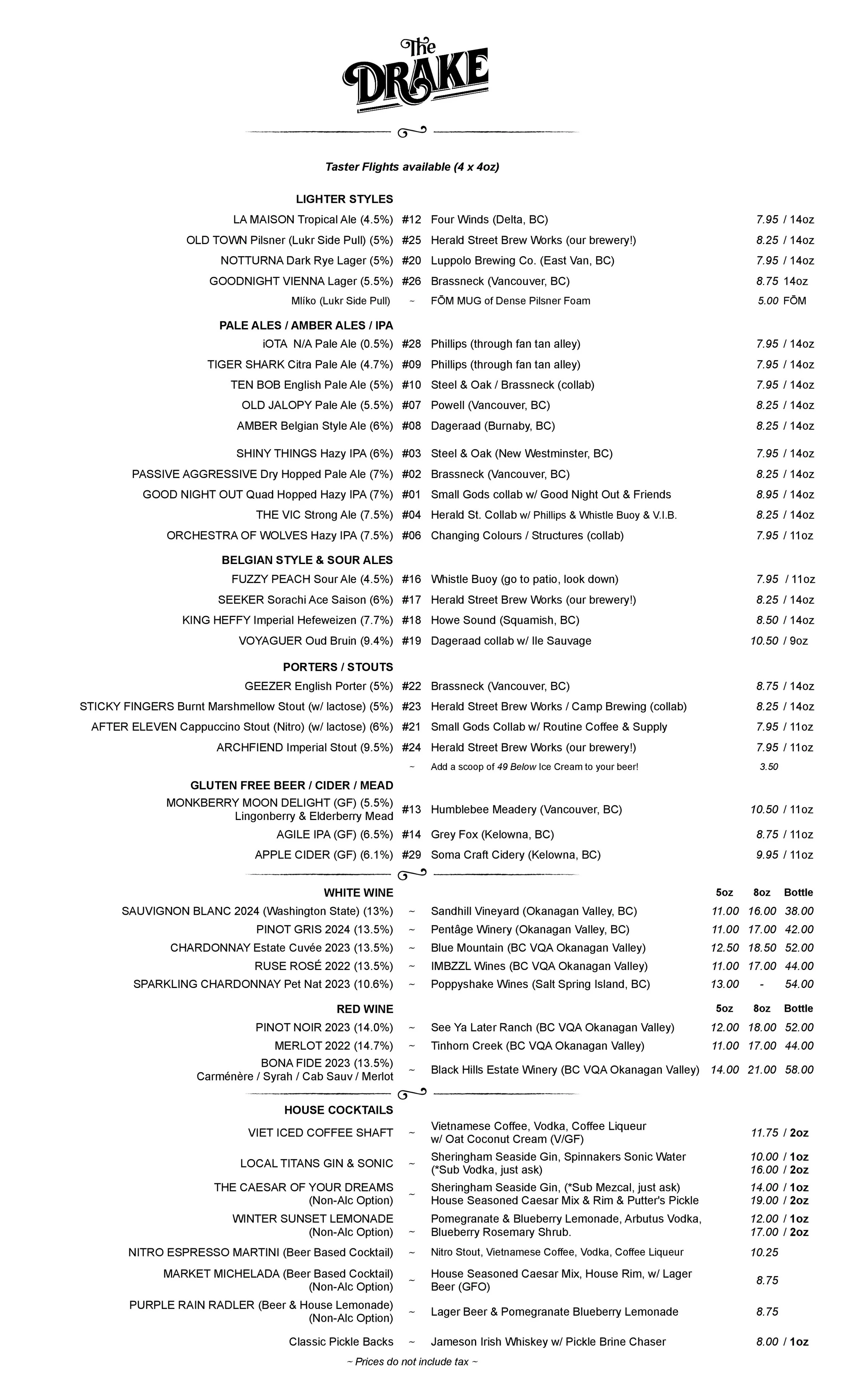 As Orville Redenbacher said, “Do one thing and do it well.” Our one thing is beer. craft beer to be precise. We have a local cider on tap as well as a modest selection of BC wines, If you’re bringing a non-beer drinking friend, and if you are looking for something non-alcoholic we have some locally produced soda’s and sparkling waters. So, no hard bar or cocktails, but we will gladly point you in the direction of some local, world class cocktail bars that are just steps from us!